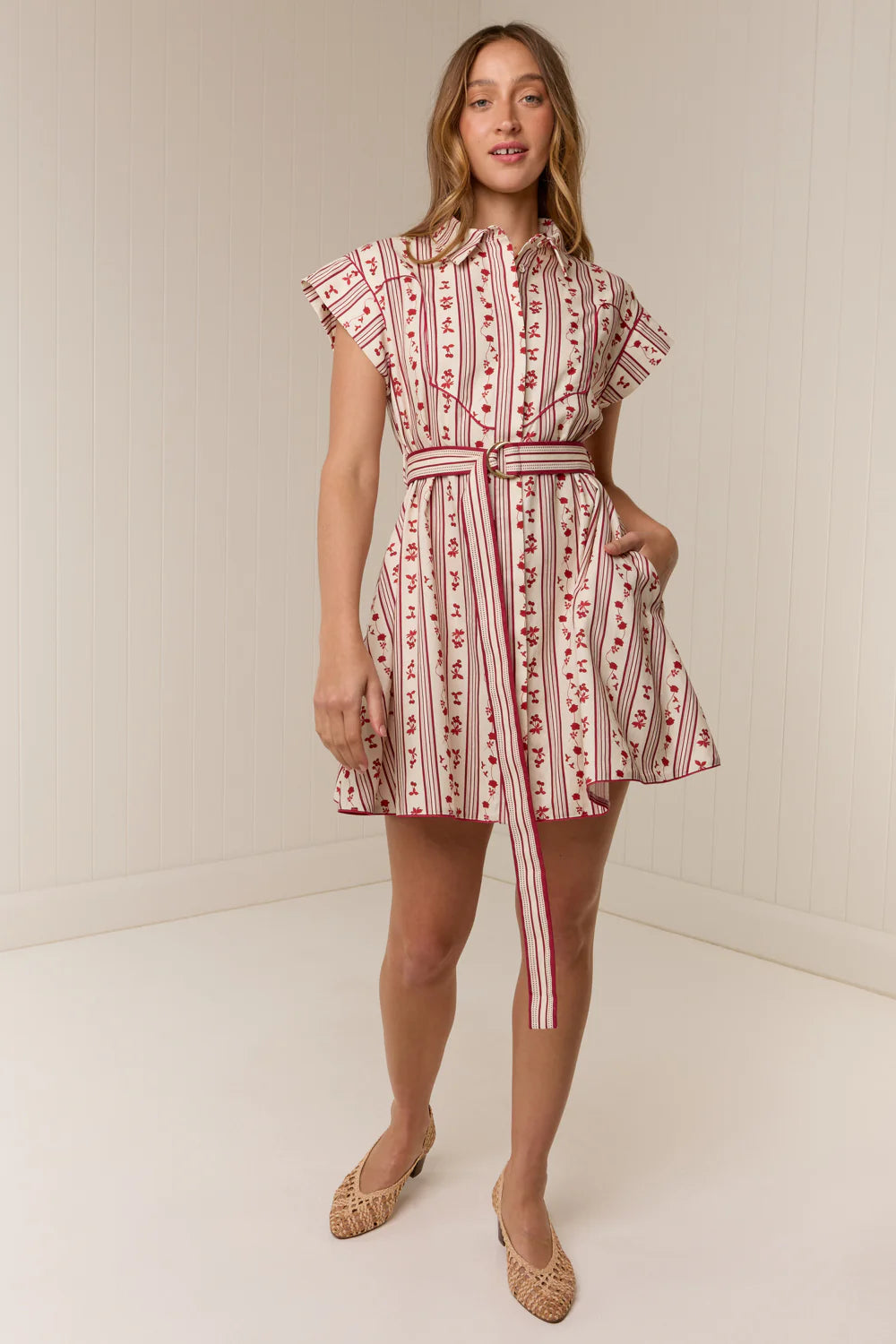 Regular price $380.00 Save Liquid error (snippets/product-template line 131): Computation results in '-Infinity'%The Manon Mini Dress is crafted from a premium Linen blend, printed in Palm Noosa's exclusive hand-drawn Raye Fleur print. Featuring a structured point collar and adjustable D-ring belt, the Manon Mini Dress offers a structured silhouette, finished with a western-style yoke and contrast piping for a relaxed yet elevated look.